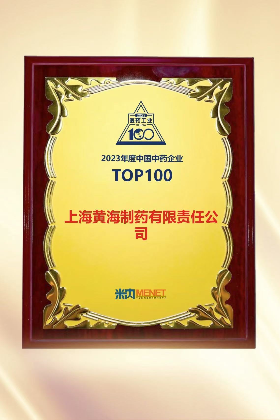 2023年黄海制药荣获年度中国中药企业TOP100