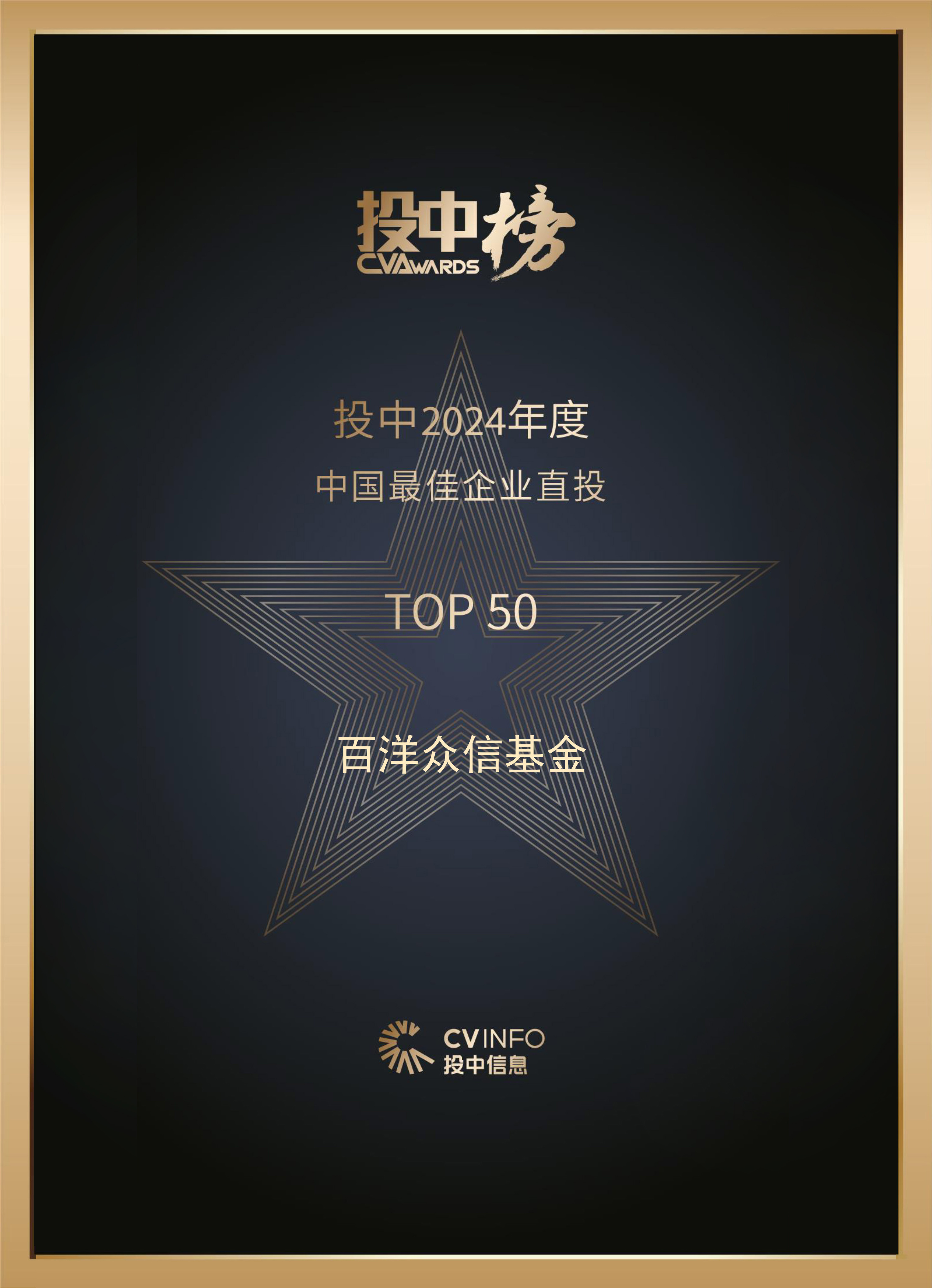 2024年百洋众信基金荣登“投中2024年度中国最佳企业直投TOP50”